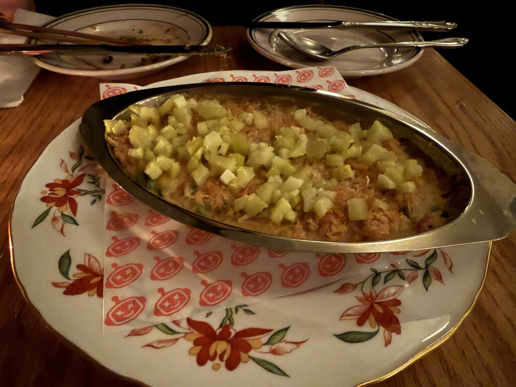 We tried Seafood Doria for the first time, a Western-influenced Japanese dish that originated in Yokohama. While the flavors were enjoyable, the seafood was cut into such small pieces that it was hard to distinguish what you were eating. As a result, the dish felt more like a rich, comforting dip—something you’d want to scoop up with bread or chips—rather than a true seafood main. At $36, the portion and presentation made the price feel a bit steep.